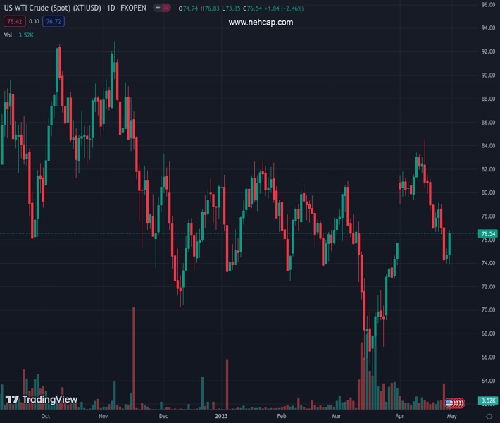 XTIUSD currently trading at 76.57 at the time of writing. Pair opened at 74.76 and is trading with a change of 2.42 % .