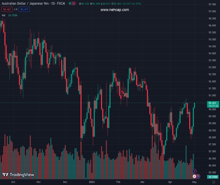 AUDJPY currently trading at 90.43 at the time of writing. Pair opened at 90.18 and is trading with a change of 0.28 % .