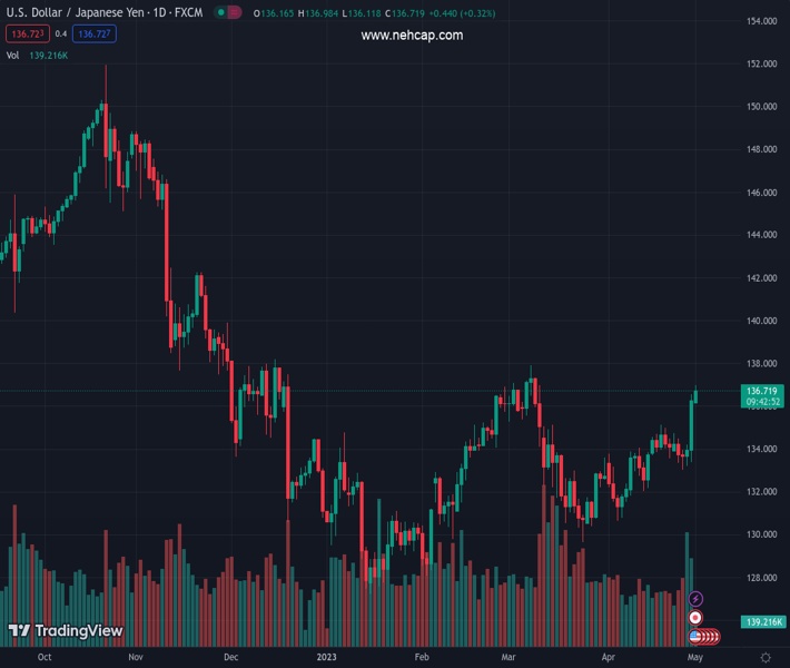 USDJPY currently trading at 136.62 at the time of writing. Pair opened at 136.31 and is trading with a change of 0.23 % .
