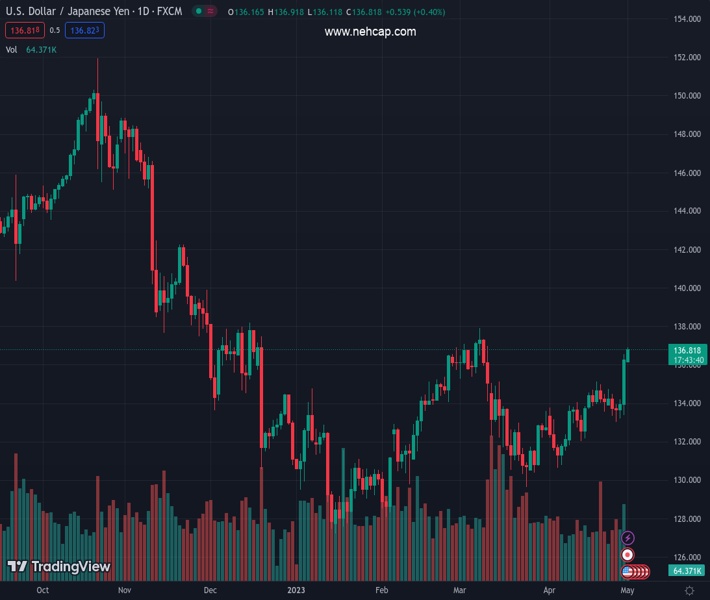 USDJPY currently trading at 136.87 at the time of writing. Pair opened at 136.31 and is trading with a change of 0.41% % .
