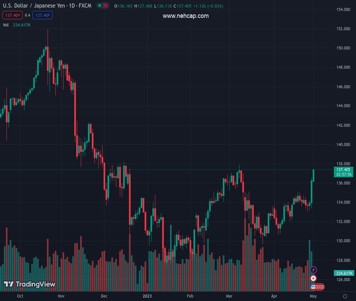 USDJPY currently trading at 137.4 at the time of writing. Pair opened at 136.31 and is trading with a change of 0.8 % .