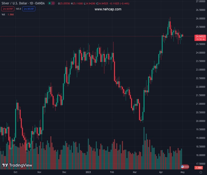 XAGUSD currently trading at 24.96 at the time of writing. Pair opened at 25.06 and is trading with a change of -0.40% % .