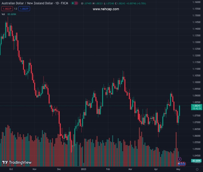 AUDNZD currently trading at 1.0829 at the time of writing. Pair opened at 1.0753 and is trading with a change of 0.71 % .