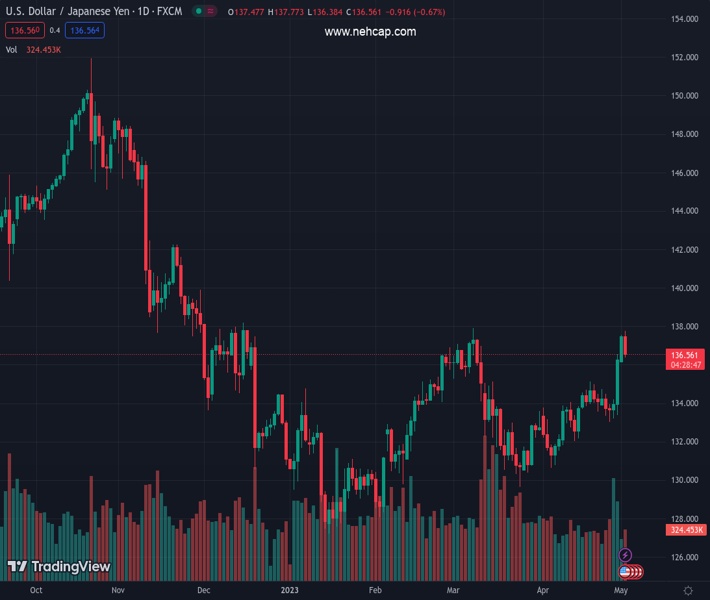 USDJPY currently trading at 136.6 at the time of writing. Pair opened at 137.5 and is trading with a change of -0.65 % .