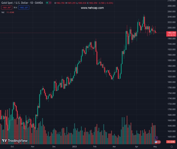 XAUUSD currently trading at 1982.18 at the time of writing. Pair opened at 1982.54 and is trading with a change of -0.02 % .