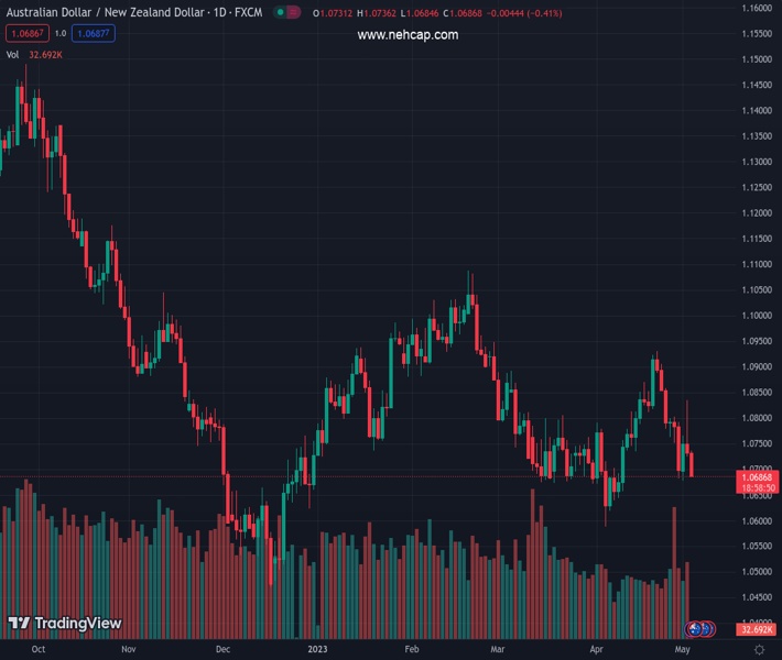AUDNZD currently trading at 1.0698 at the time of writing. Pair opened at 1.0733 and is trading with a change of -0.33% % .
