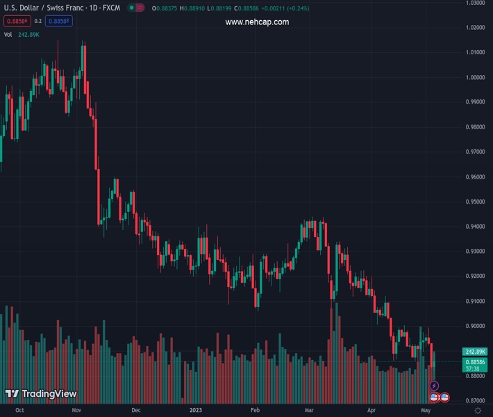 USDCHF currently trading at 0.8858 at the time of writing. Pair opened at 0.8838 and is trading with a change of 0.23 % .