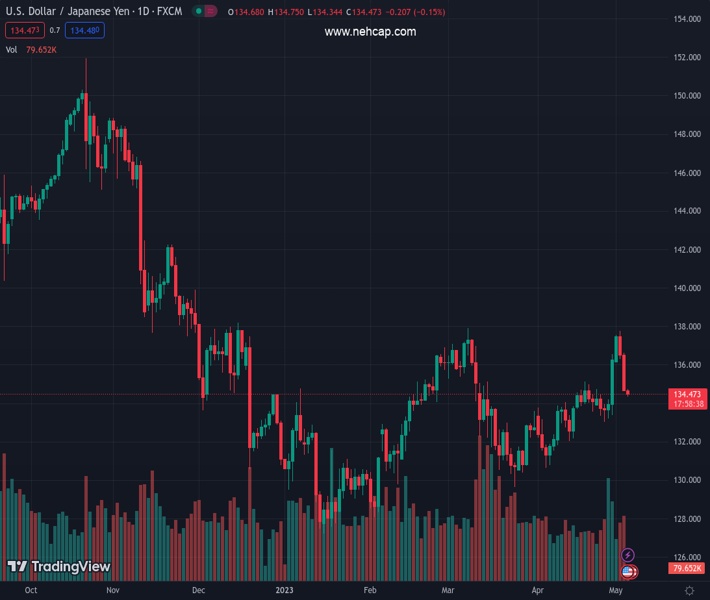 USDJPY currently trading at 134.47 at the time of writing. Pair opened at 134.7 and is trading with a change of -0.17% % .
