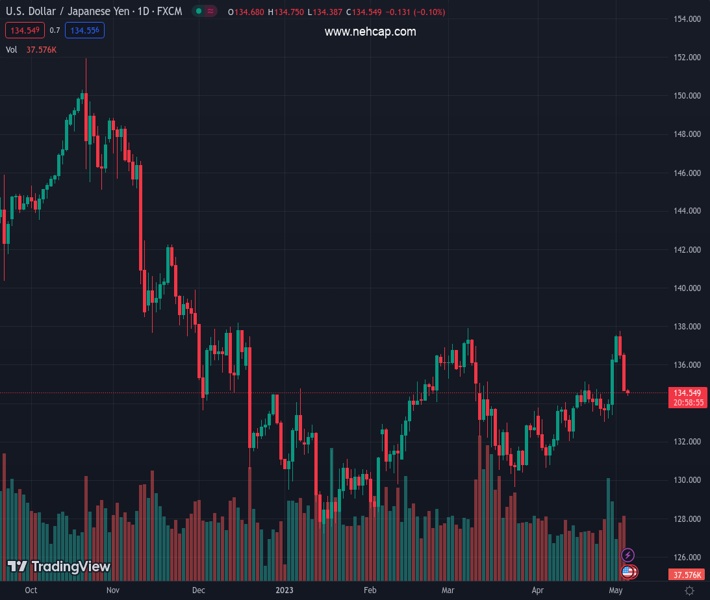 USDJPY currently trading at 134.56 at the time of writing. Pair opened at 136.55 and is trading with a change of -1.46 % .