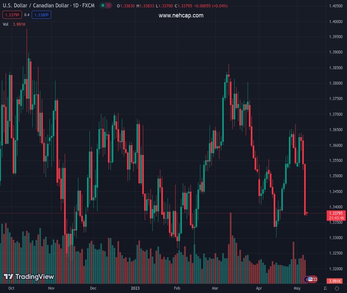 USDCAD currently trading at 1.338 at the time of writing. Pair opened at 1.3374 and is trading with a change of 0.04 % .