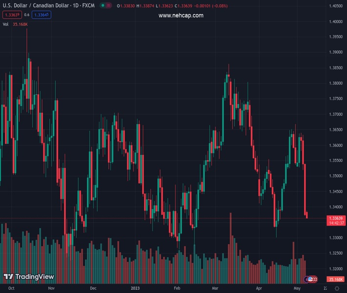 USDCAD currently trading at 1.3372 at the time of writing. Pair opened at 1.3374 and is trading with a change of -0.01% % .