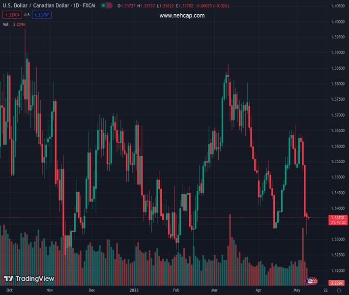 USDCAD currently trading at 1.3372 at the time of writing. Pair opened at 1.3374 and is trading with a change of -0.01 % .