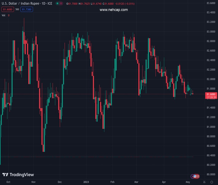 - USD/INR is gyrating in a range of 81.64-81.95 from the past week.