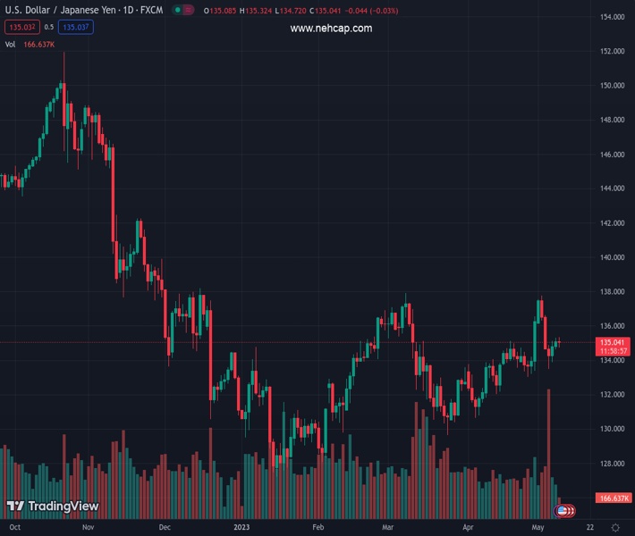 USDJPY currently trading at 134.9 at the time of writing. Pair opened at 135.07 and is trading with a change of -0.13 % .
