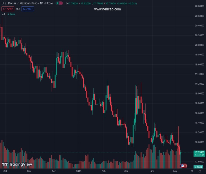 USDMXN currently trading at 17.8032 at the time of writing. Pair opened at 17.796 and is trading with a change of 0.04% % .