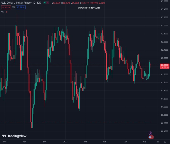 USDINR currently trading at 82.0295 at the time of writing. Pair opened at 82.076 and is trading with a change of -0.06% % .