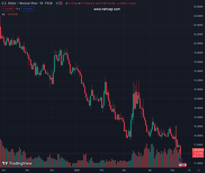 USD/MXN dives to new six-year lows last seen in September 2017, after US inflation slowed down, as shown by data revealed, triggering speculations that the US Federal Reserve (Fed) can pause its tightening cycle. At the time of writing, the USD/MXN is trading at 17.6279, down 0.81%.