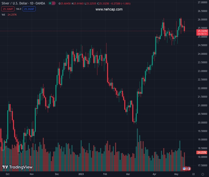 XAGUSD currently trading at 25.35 at the time of writing. Pair opened at 25.61 and is trading with a change of -1.02 % .