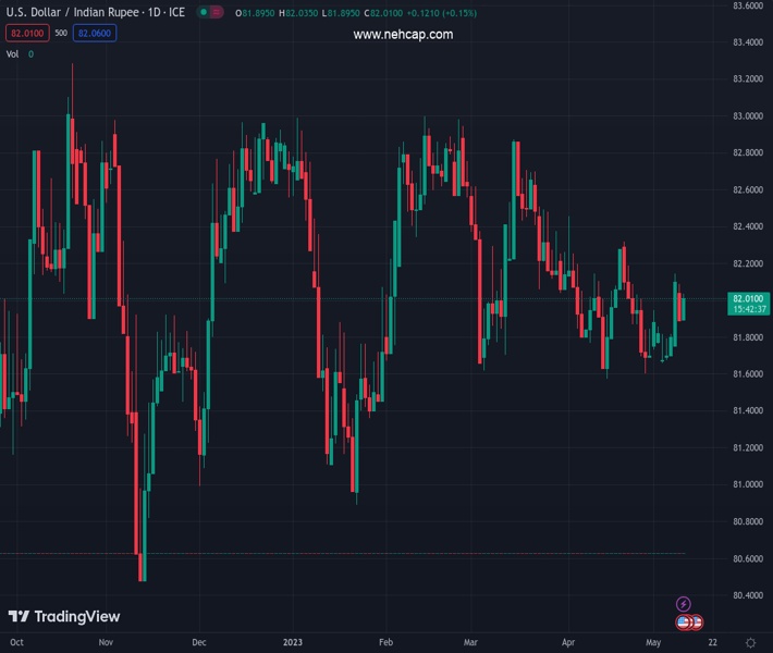 USDINR currently trading at 82.0305 at the time of writing. Pair opened at 81.923 and is trading with a change of 0.13% % .