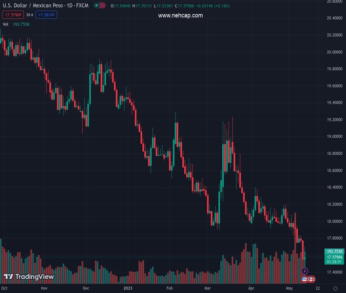 USDMXN currently trading at 17.5831 at the time of writing. Pair opened at 17.5507 and is trading with a change of 0.18 % .