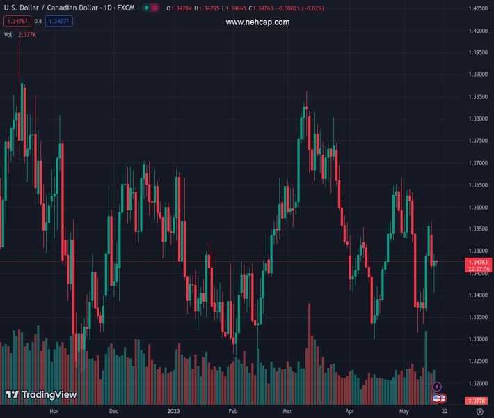 The USD/CAD pair has shown a V-shape recovery from near the round-level support of 1.3400 as negotiations between White House and Republican leaders concluded without a constructive outcome. Reuters reported that the meeting ended on an upbeat and unexpected note as McCarthy, coming out of the meeting with Biden and other congressional leaders, said, “It is possible to get a deal by the end of the week.”