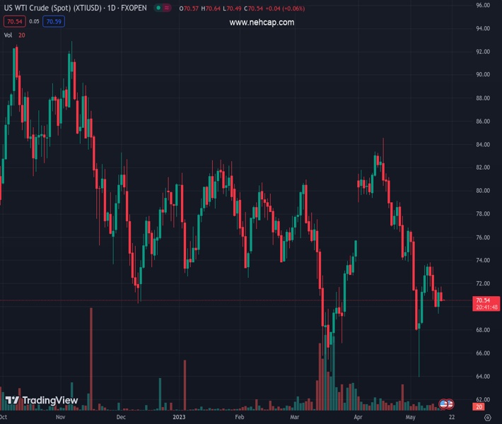 West Texas Intermediate (WTI), futures on NYMEX, have defended their immediate support of $70.50 in the Asian session. Earlier, the oil price slipped sharply as investors are worried that further postponement of approval for increasing the US debt-ceiling limit has deepened fears of a recession in the United States economy.
