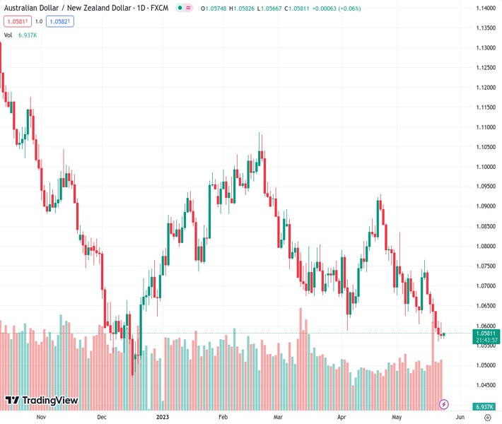 AUDNZD currently trading at 1.0582 at the time of writing. Pair opened at 1.0582 and is trading with a change of 0.0 % .