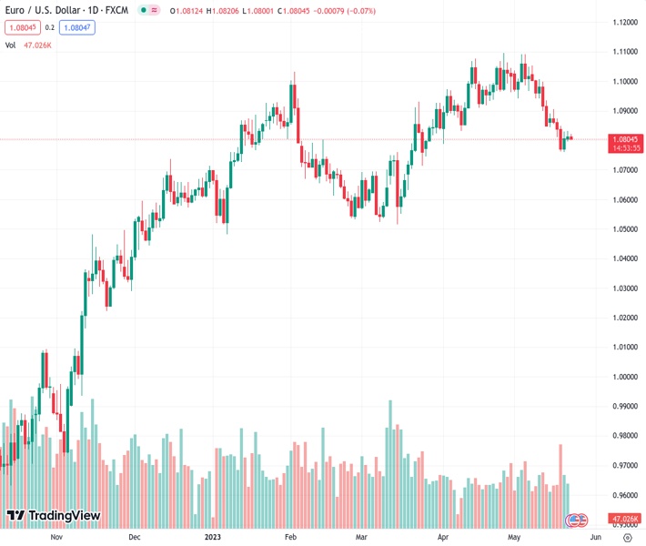 EURUSD currently trading at 1.0804 at the time of writing. Pair opened at 1.0813 and is trading with a change of -0.08 % .