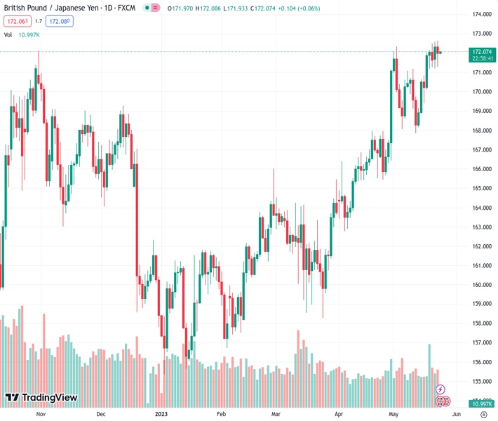 GBP/JPY retraces from around the 172.60 area and hovers nearby the 172.00 figure as market sentiment deteriorates. Failure to reach an agreement between the White House (WH) and the US Congress dampened investors’ mood as the June 1 deadline approached. As the Asian session begins, the GBP/JPY is trading at 172.01, almost flat.
