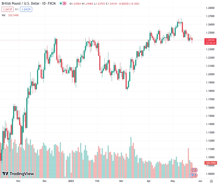 - GBP/USD fell further due to uncertainty surrounding US debt-ceiling negotiations and mixed US economic data, with investors flocking to the perceived safety of the US Dollar.