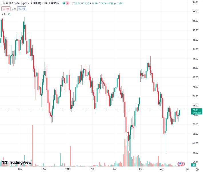 Oil price trades marginally higher on Tuesday, continuing its recovery from the poor open at the start of the week. Financial markets in general suffer a lack of volatility due to uncertainty over the United States debt ceiling. In the event of a default, US demand would plummet, resulting in lower Oil prices. Optimism after talks on Monday raises hopes, with history showing a last-minute deal is the norm.
