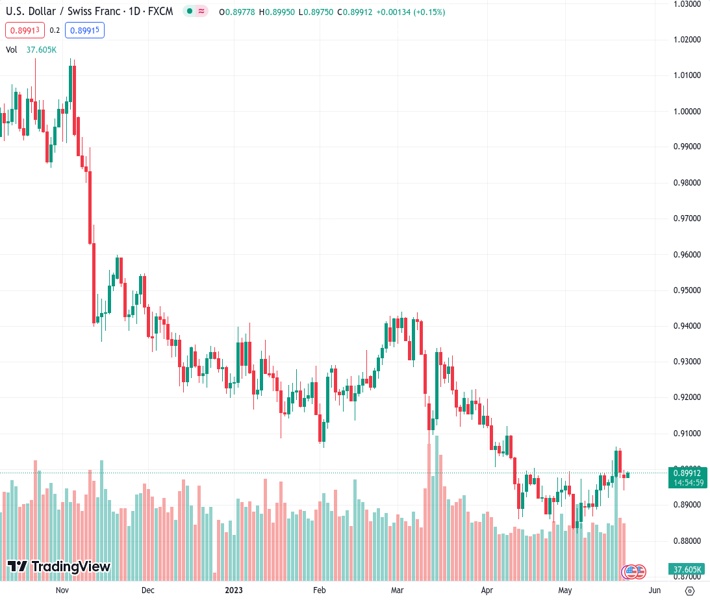 Apart from the US default concerns, the hawkish Federal Reserve (Fed) bias also underpins the US Dollar’s strength and propels the USD/CHF price of late. On Monday, Minneapolis Federal Reserve President Neel Kashkari favored the rate hike trajectory while citing the fears of the US default and banking crisis, which in turn allowed the US Dollar to remain firmer. On the same line, St. Louis Federal Reserve President James Bullard ruled out the recession concerns on Monday while saying that He sees two more rate hikes this year before reaching the base rate. Furthermore, Atlanta Fed President Raphael Bostic, Richmond Fed President Thomas Barkin and San Francisco President Mary C Daly recently backed the calls for higher rates.