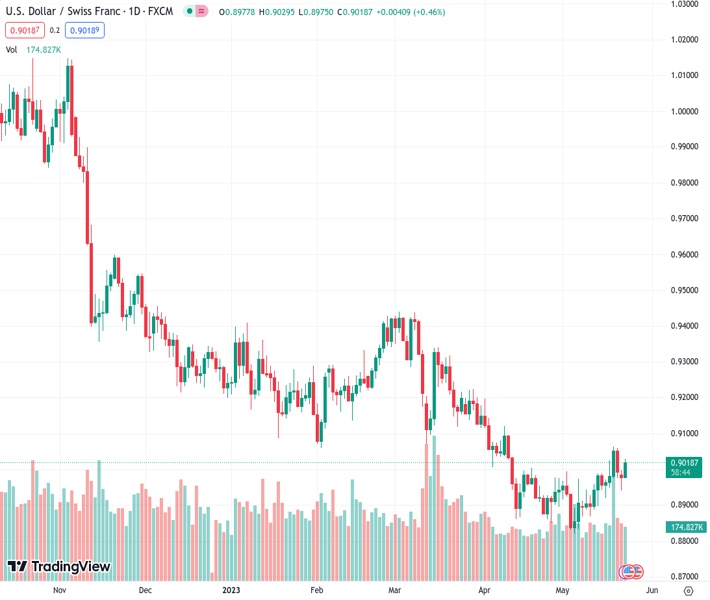 USDCHF currently trading at 0.9019 at the time of writing. Pair opened at 0.8979 and is trading with a change of 0.45 % .