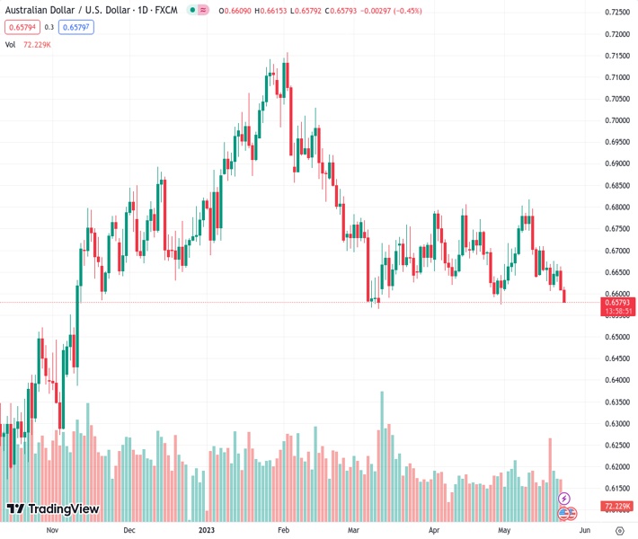 AUDUSD currently trading at 0.6585 at the time of writing. Pair opened at 0.661 and is trading with a change of -0.38% % .