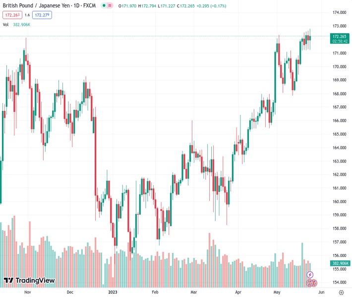 GBP/JPY clings to the 172.00 figure amidst a risk-off impulse as the US debt ceiling woes and the release of the US Federal Reserve (Fed) May minutes loom. Therefore, investors seeking safety moved toward safe-haven peers, except for the Japanese Yen (JPY), weakening against the Pound Sterling (GBP). At the time of writing, the GBP/JPY is trading around 172.30s.