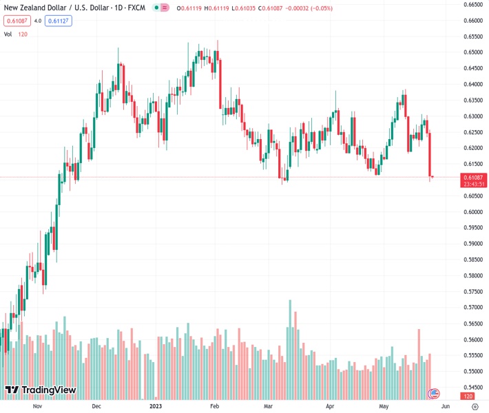 NZDUSD currently trading at 0.6113 at the time of writing. Pair opened at 0.6248 and is trading with a change of -2.16 % .