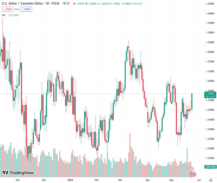 “CAD is unable to keep up; and clearly the uncertain outcome of the row about the debt ceiling is having a bigger effect than the rising rate expectations for Canada (stronger compared with the US).”