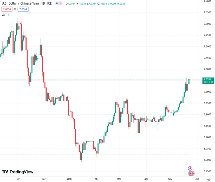 #USDCNY @ 7.07913 fix: 7.0560 vs the close of 7.0551