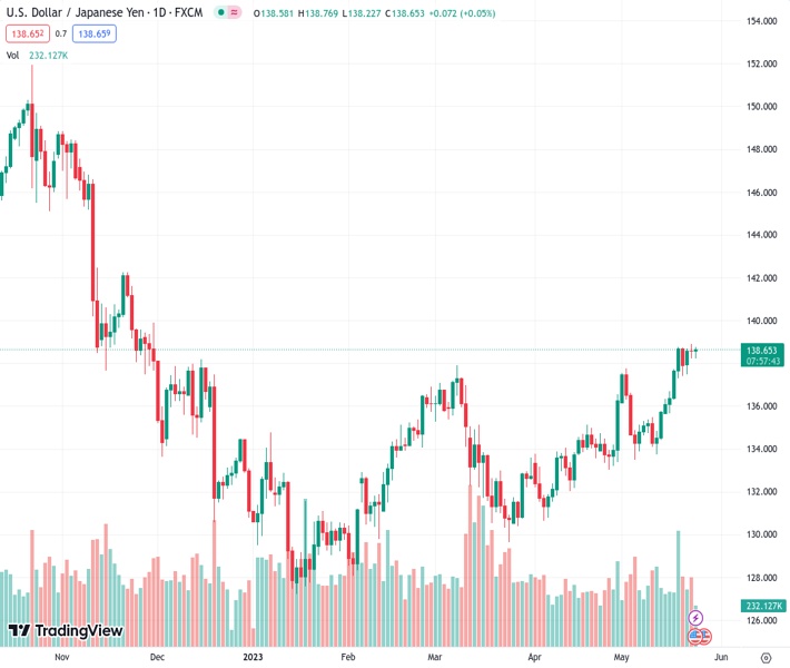 USDJPY currently trading at 138.53 at the time of writing. Pair opened at 138.58 and is trading with a change of -0.04 % .