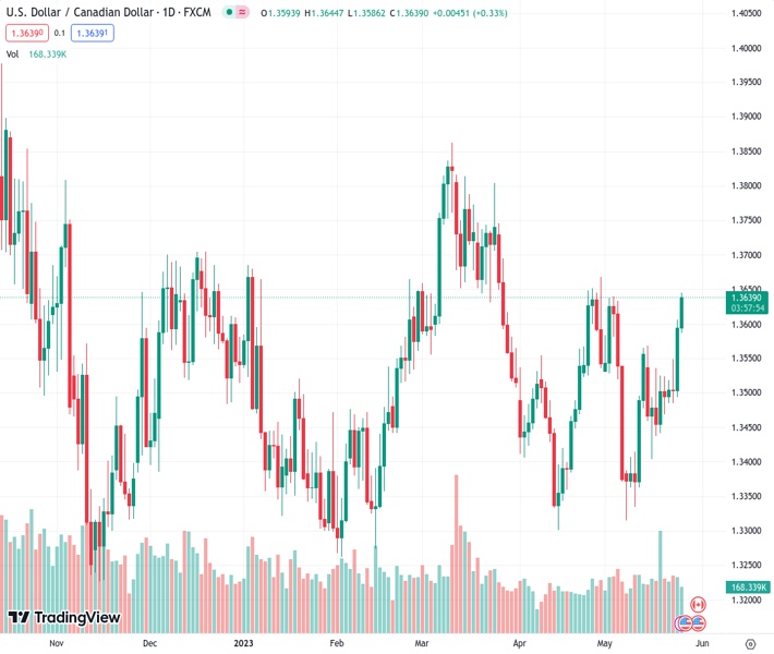 #USDCAD @ 1.36377 US bond yields climb amid debt ceiling uncertainty, with the 10-year rate reaching 3.789%, a high since the Silicon Valley Bank collapse. (Pivot Orderbook analysis)