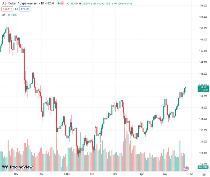 USDJPY currently trading at 139.62 at the time of writing. Pair opened at 139.46 and is trading with a change of 0.11% % .