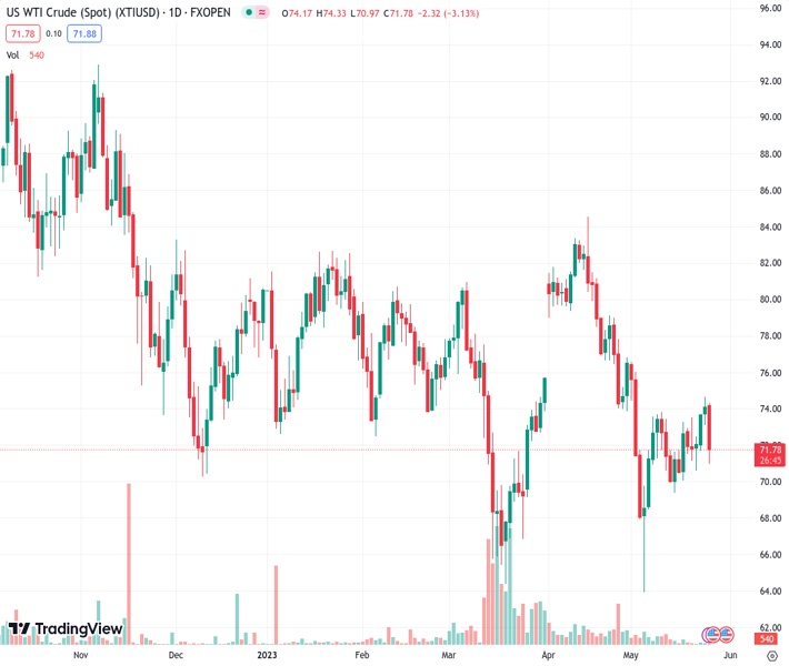 West Texas Intermediate, WTI, is currently trading at $71.93 and has traveled between a low of $71.03 and $74.33. Meanwhile, comments from Russia’s oil minister, who said next month’s OPEC+ meeting was unlikely to end with further cuts to production, have weighed on the black gold.