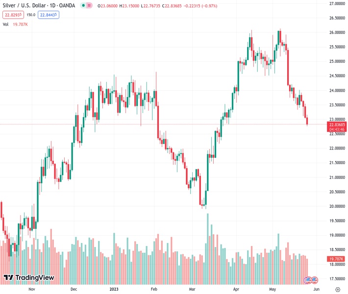 #XAGUSD @ 22.838 Silver price is on a 4-day losing streak.
