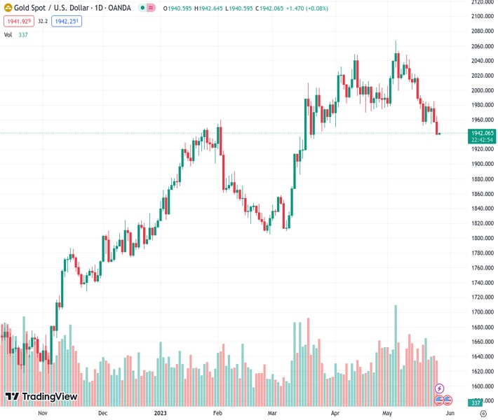 #XAUUSD @ 1,941.81 Gold Price Forecast: bears occupy driver’s seat on hawkish Fed bets, US default jitters, @nehcap view: Further downside expected (Pivot Orderbook analysis)