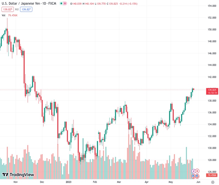 USDJPY currently trading at 139.84 at the time of writing. Pair opened at 140.07 and is trading with a change of -0.16 % .