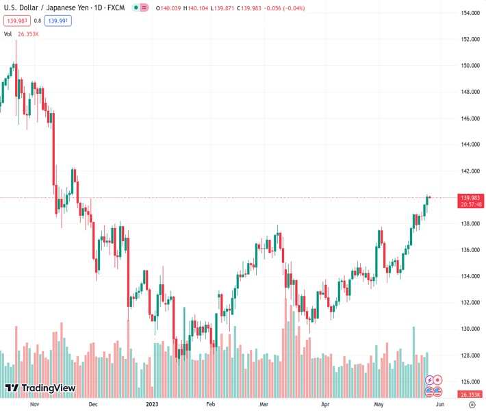 USDJPY currently trading at 139.92 at the time of writing. Pair opened at 139.46 and is trading with a change of 0.33% % .