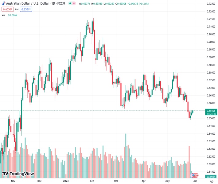AUDUSD currently trading at 0.6548 at the time of writing. Pair opened at 0.6538 and is trading with a change of 0.15 % .