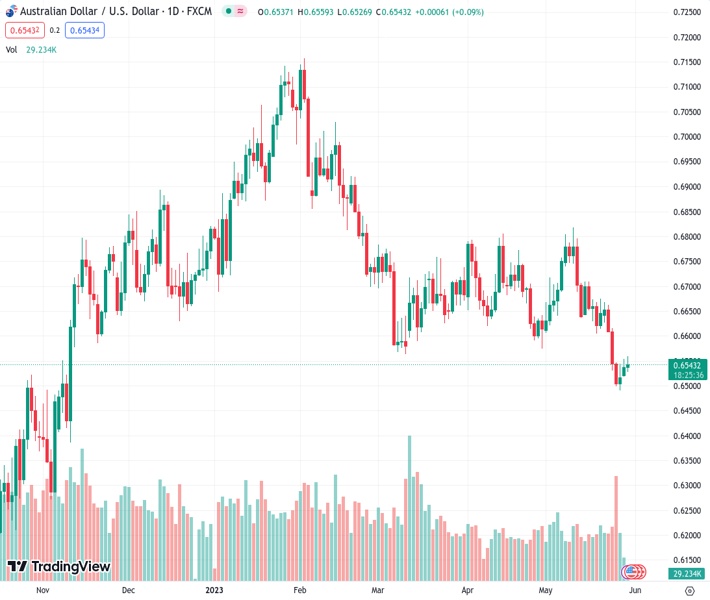 At the time of writing, AUD/USD is holding gains at around 0.6550, up 0.43% on the day.