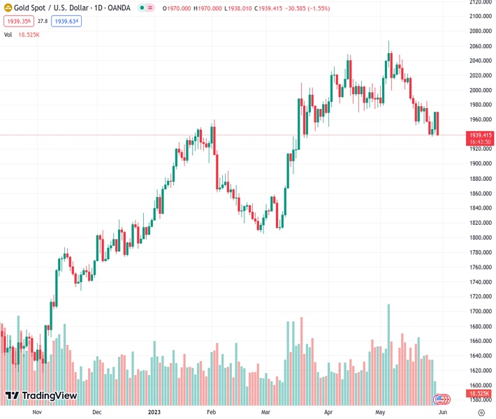 XAUUSD currently trading at 1939.56 at the time of writing. Pair opened at 1943.8 and is trading with a change of -0.22 % .