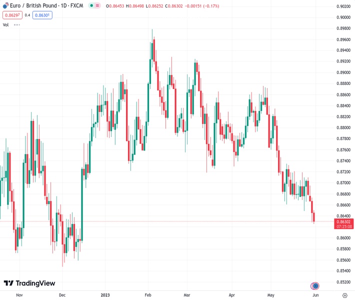 EURGBP currently trading at 0.8634 at the time of writing. Pair opened at 0.8647 and is trading with a change of -0.15 % .